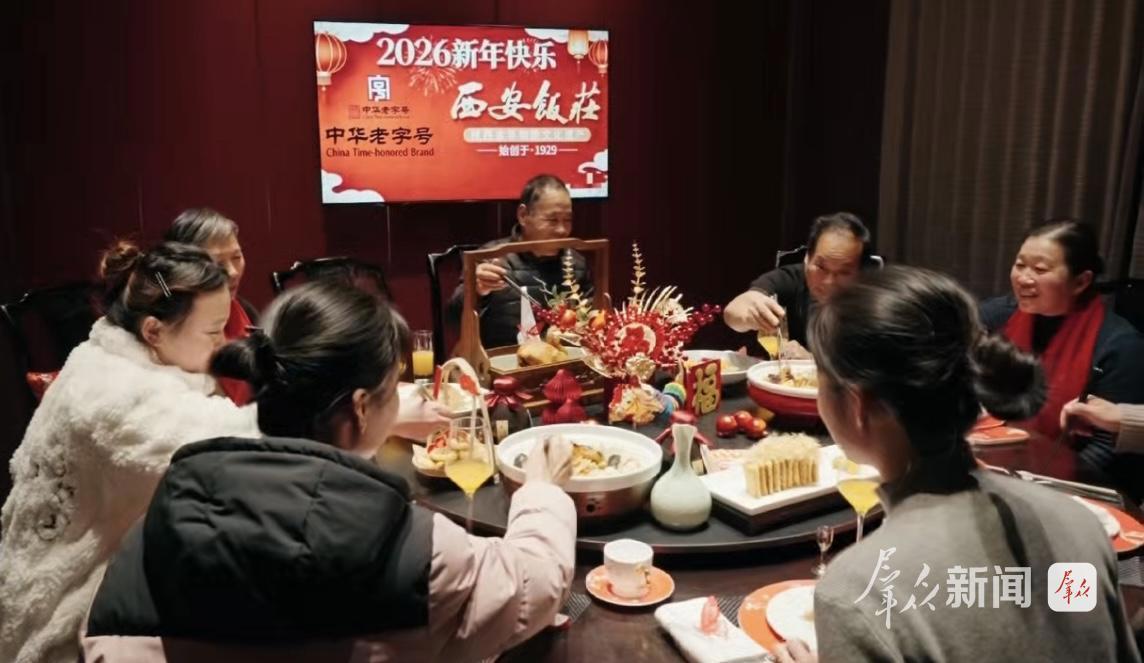 2026年新春,西安飯莊的經(jīng)典陜菜葫蘆雞、油潑鴨嘴魚(yú)、如風(fēng)桃花蝦以及精致花饃,代表陜菜精粹出鏡央視《團(tuán)圓年家鄉(xiāng)味·中國(guó)人的年夜飯》特別節(jié)目。盤中菜肴,成為解讀“團(tuán)圓”與“家鄉(xiāng)味”的生動(dòng)注腳;方寸熒屏,化為展示千年陜菜文化的鮮活名片。