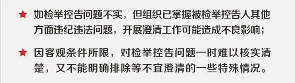《辦法》也同時規(guī)定了一些不予澄清的情形。如檢舉控告問題不實(shí),但組織已掌握被檢舉控告人其他方面違紀(jì)違法問題,開展澄清工作可能造成不良影響;因客觀條件所限,對檢舉控告問題一時難以核實(shí)清楚,又不能明確排除等不宜澄清的一些特殊情況。