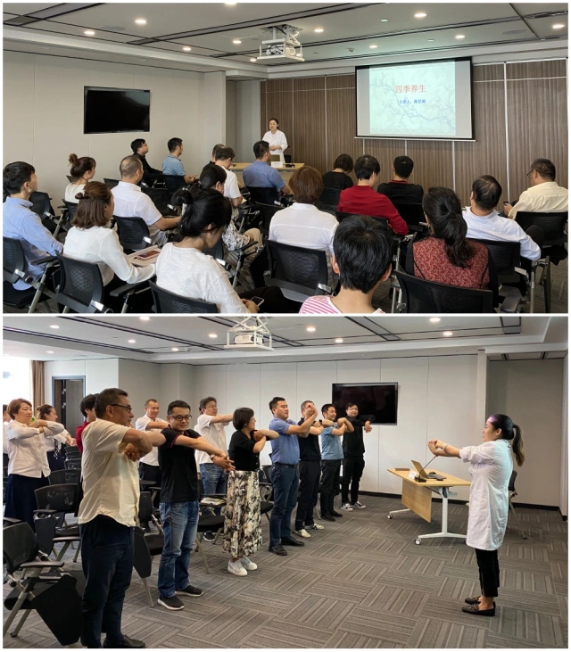 義診活動主要包括把脈問診,普及健康知識,傳授保健技能,前來問診、咨詢的員工絡繹不絕,陳醫(yī)生針對不同情況給予診療建議。同時,陳醫(yī)生還圍繞四季養(yǎng)生知識進行專題講座,宣傳中醫(yī)養(yǎng)生理念,現(xiàn)場教學實用保健操,為大家送去貼心健康服務。