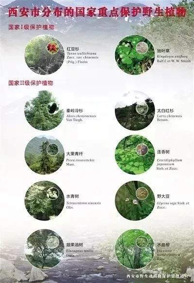 秦嶺素有“中國國家公園”及“綠色基因庫”的美譽,是中華文明的精神標(biāo)識和中華地理的自然標(biāo)識,是我國乃至世界都極為罕見的生物資源寶庫,蘊藏著大量珍稀野生動植物資源。其中,國家一級保護野生動物有:大熊貓、金絲猴、羚牛、朱鹮、豹、林麝等10余種;二級保護野生動物有:豺、黑熊、石貂等65種。國家一級保護植物有:紅豆杉、獨葉草等4種;二級保護植物有:連香樹、太白紅杉、大果青扦、水曲柳、香果樹、秦嶺冷杉等13種。